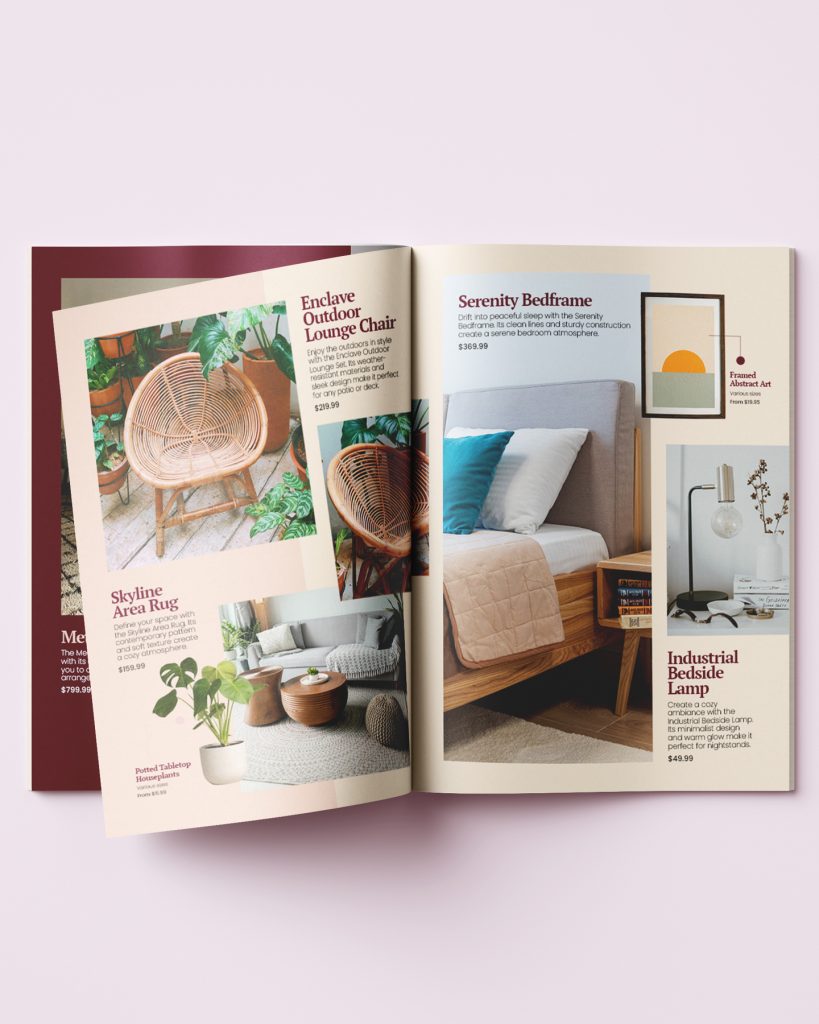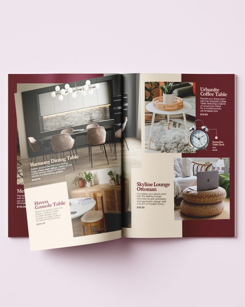 A contemporary, editorial-style catalogue that highlights each product through balanced layout, clear typography, and consistent spacing. The finished piece feels modern, easy to navigate, and ready to use across both print and digital retail settings.